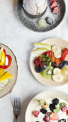 Mit unserem Frühstücksservice können Sie sich Ihren individuellen Frühstückskorb ganz nach Ihren Vorlieben zusammenstellen – egal, ob Sie lieber süß oder herzhaft in den Tag starten, vegetarisch genießen oder regionale Spezialitäten kosten möchten.
